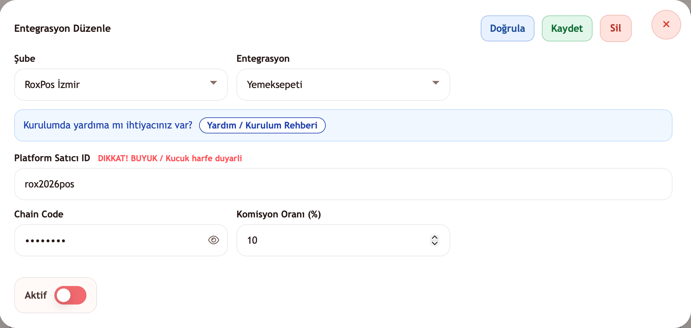 Bu sayfa, Yemeksepeti entegrasyonu için gerekli tüm kurulum adımlarını içermektedir.