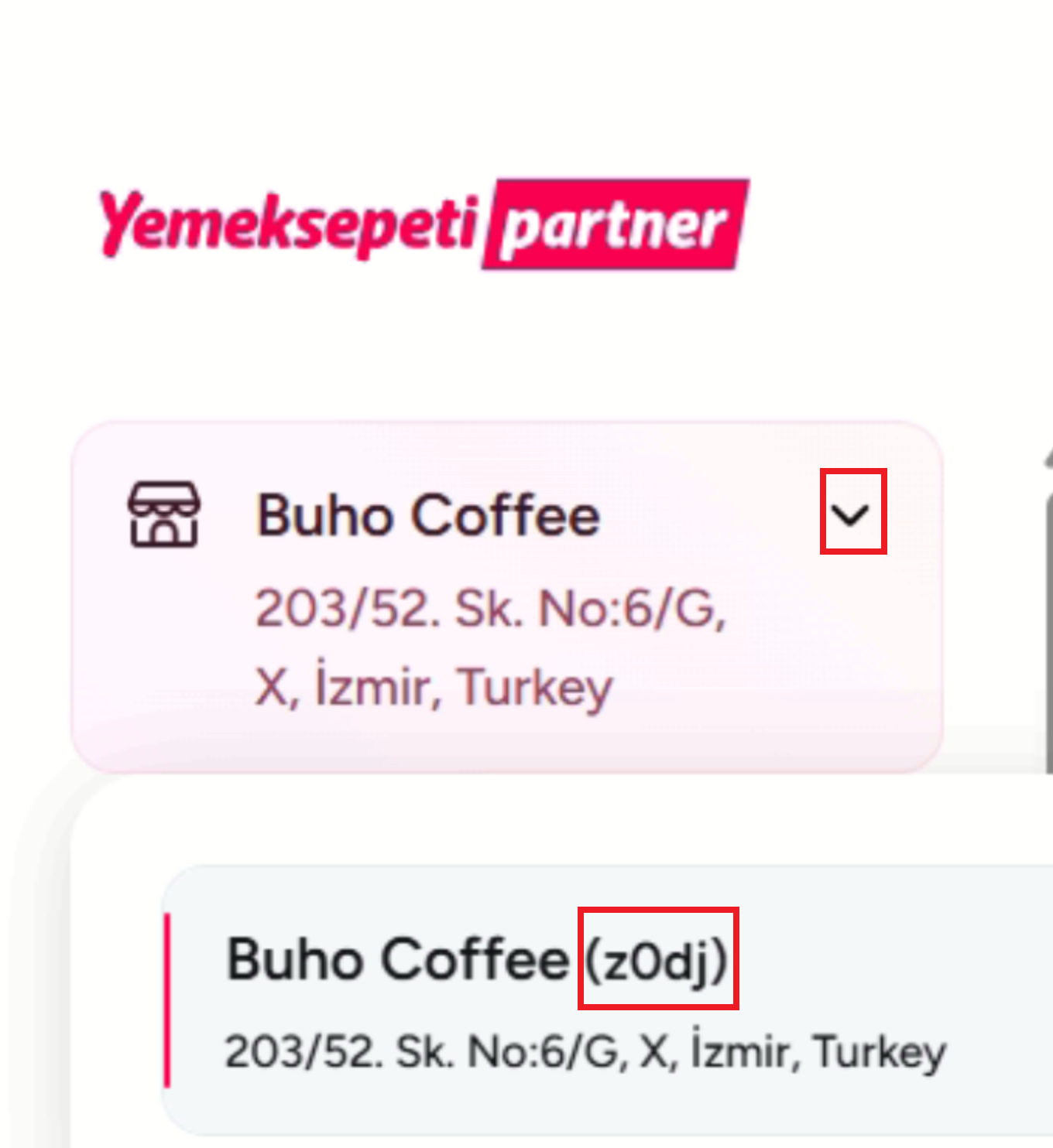 - Yemeksepeti Chain Code bilgisi doğrudan panelde görüntülenmez.